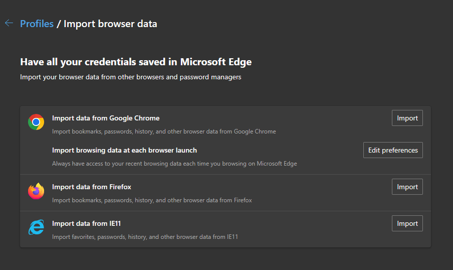 在另一个界面中微软也表示在用户同意后,Microsoft Edge 会定期从其他浏览器中导入数据,这些数据还会使用微软账户服务进行同步,也就是保存到微软数据中心。