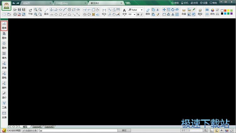 新CAD图纸创建成功。我们现在可以点击CAD迷你画图左边工具栏中的图库,打开CAD迷你画图的图库功能;