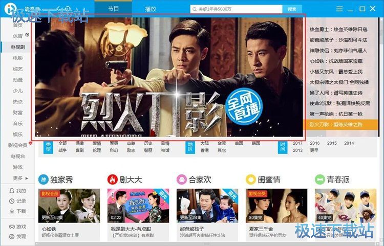 点击[电视剧]进入电视剧页面,极速小编在推荐页面中看到一部新电视剧名为《烈火刀影》,大家一起来给极速小编尝尝鲜,看看新剧。点击推荐页中的电视剧卡片,进入电视剧详情;