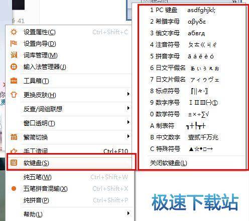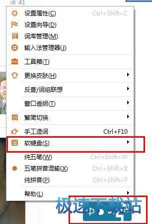 第一步:先呼出极品五笔输入法的状态栏,然后单击鼠标右键,找到软键盘