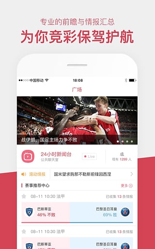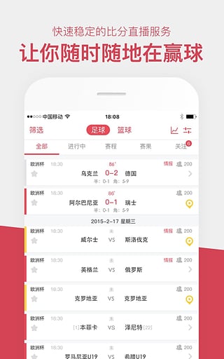 超全的赛事数据,全球超过200个国家或地区,1000多个各级赛事各类足球、篮球赛事的比分直播!